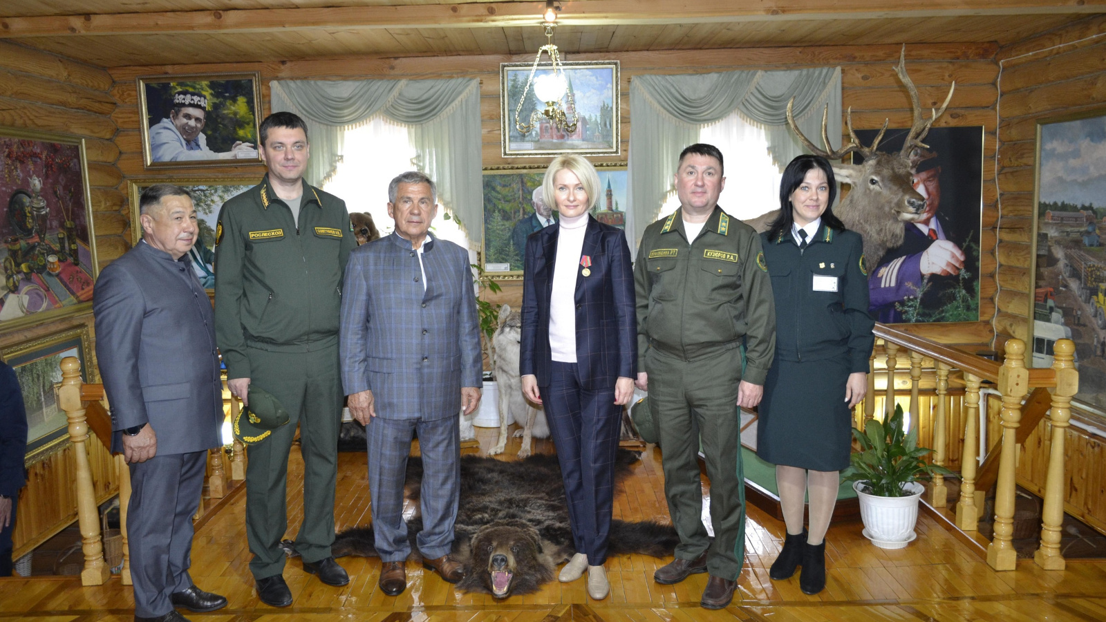 В Татарстан с рабочим визитом прибыла заместитель Председателя Правительства РФ Виктория Абрамченко. Гостью в международном аэропорту «Казань» встречали Раис Татарстана Рустам Минниханов и другие официальные лица. По программе пребывания в республике 22 сентября Виктория Абрамченко посетила музей истории Сабинского лесного хозяйства Сабинского района РТ. В заключение экскурсии был запечатлен памятным фото момент посещения музея делегацией.
