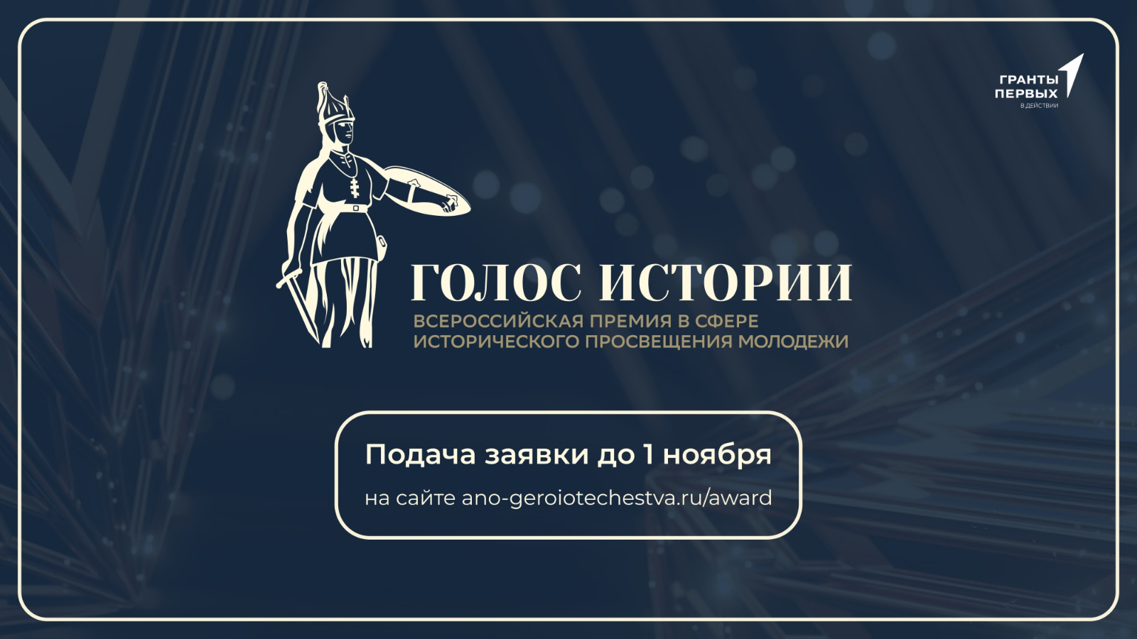 Всероссийская премия в сфере исторического просвещения молодёжи «Голос истории» открыта для приёма заявок до 1 ноября 2025 года.